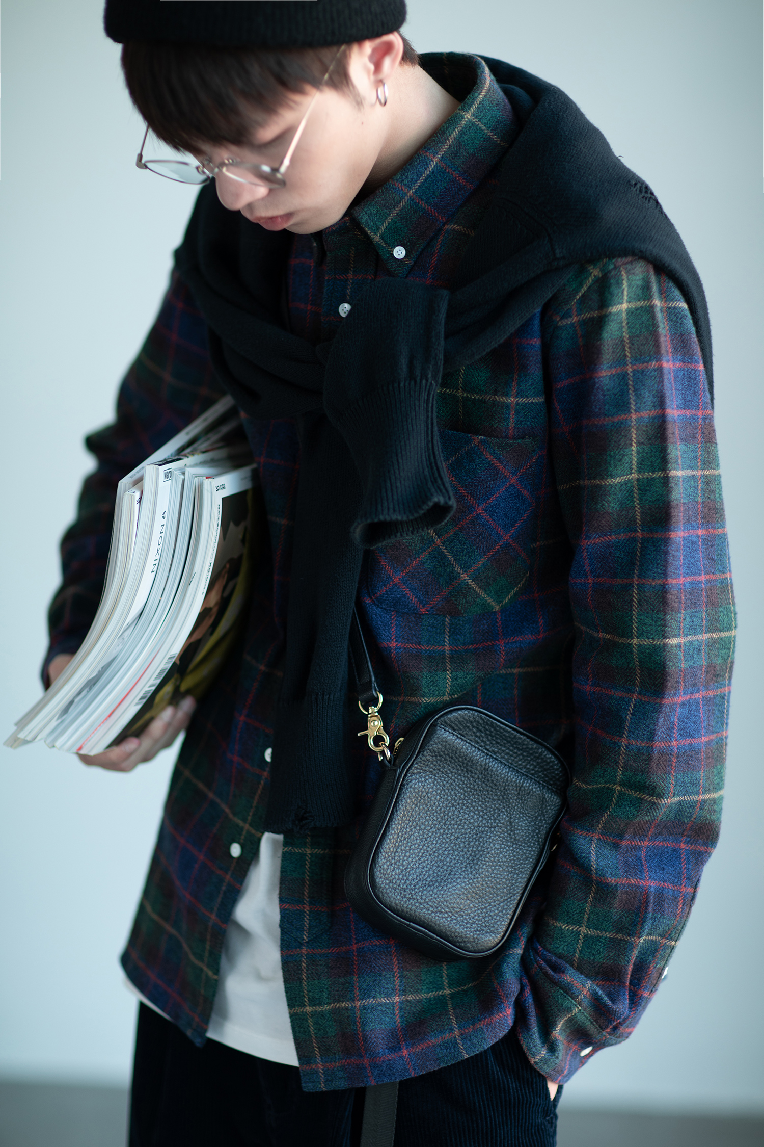 HUANimal 20AW] Japan Niigata Prefectural Fabric Plaid Long sleeves Thick Real Shirt Shirt Multicolored