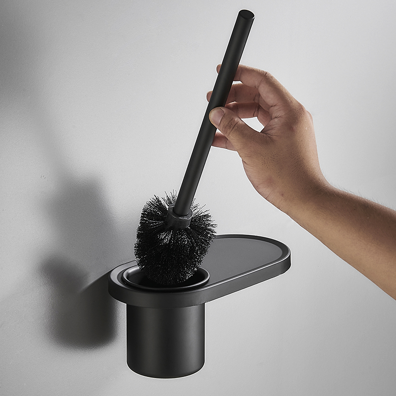 Black space aluminum toilet brush set black brush head toilet brush rack bathroom drain cleaning toilet brush rack free punch