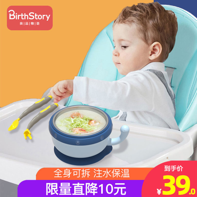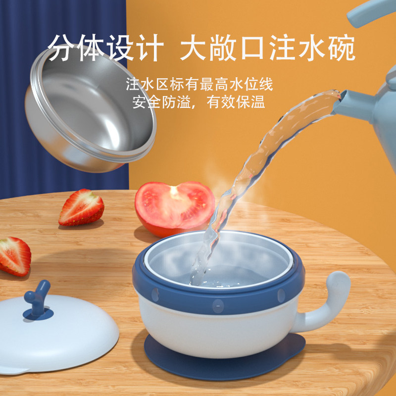 Baby water-filled insulation bowl Infant food bowl Children's bowl Drop-proof and anti-scalding removable suction cup bowl tableware set
