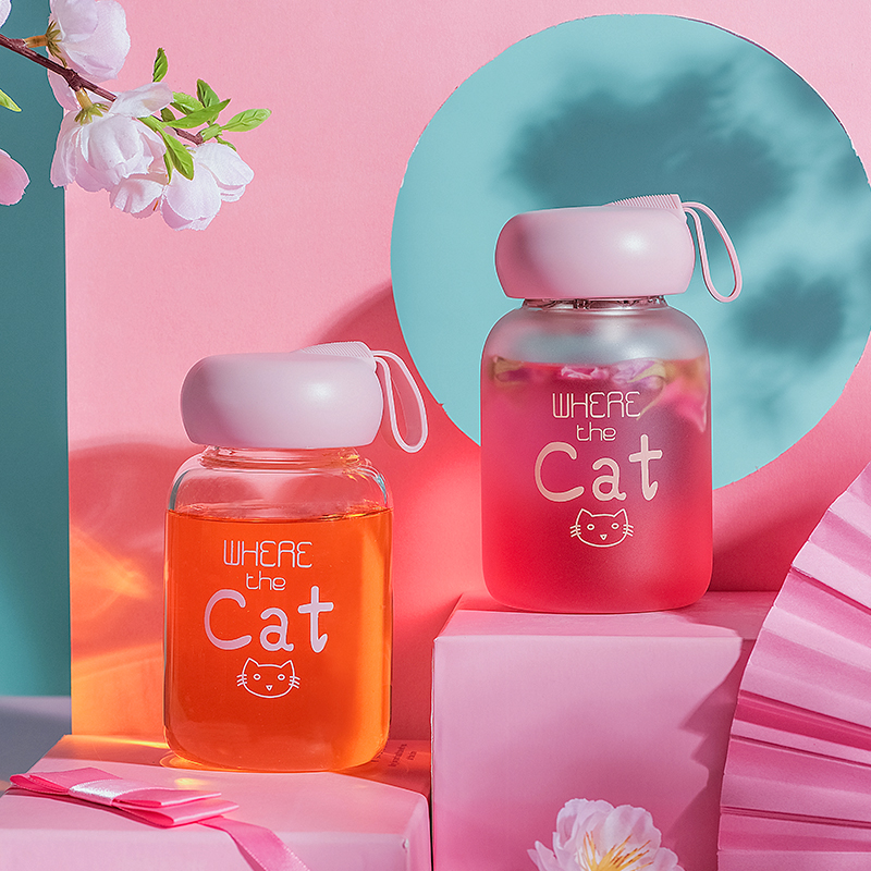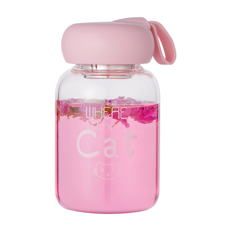 The same instrumental glass cup female Korean version cute freshening the small water glass simple portable children's cup mini-flower tea cup