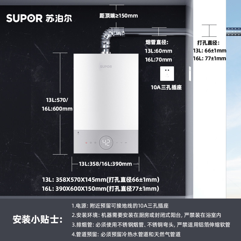 Supoir MC65 intelligent zero cold water gas water heater thermostatic household gas 13 litres of instant heat 16L
