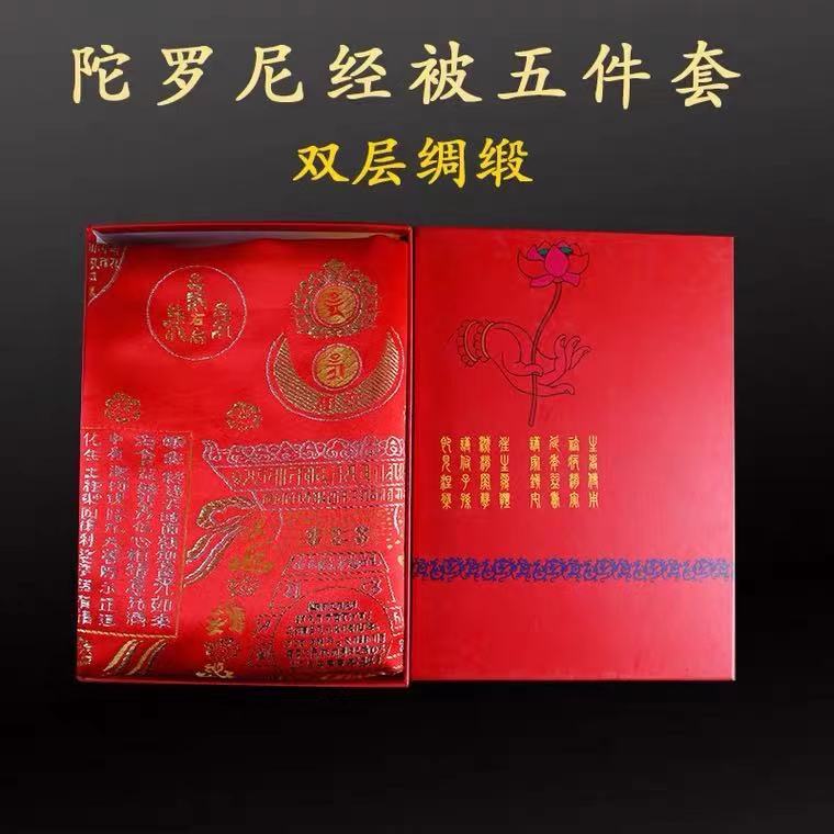 Buddhist supplies Dharani Sutra quilt High-grade five-piece set of double-layer gold silk brocade Satin Dharani Sutra Quilt