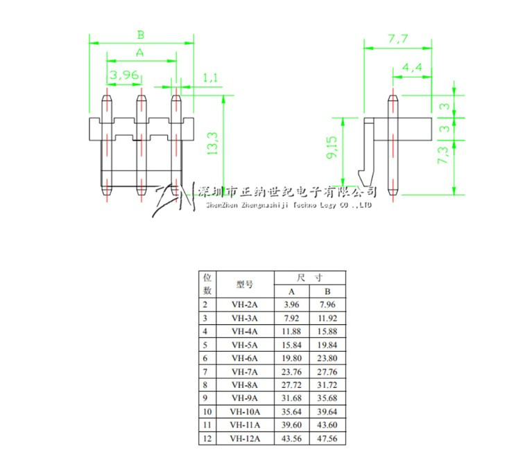 Straight pin seat Bent pin Plastic shell Connector Terminal block VH3 96-2 3 4 5 6 7 8 10 12P