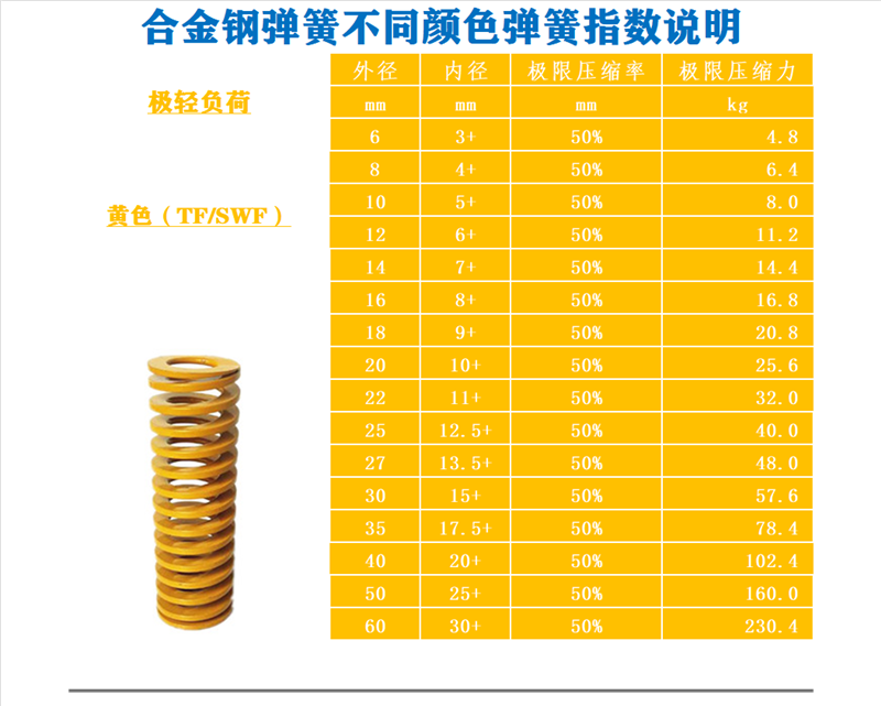 Die spring imported alloy steel flat wire compression rectangular yellow high-strength spring 18 20 22 25 27