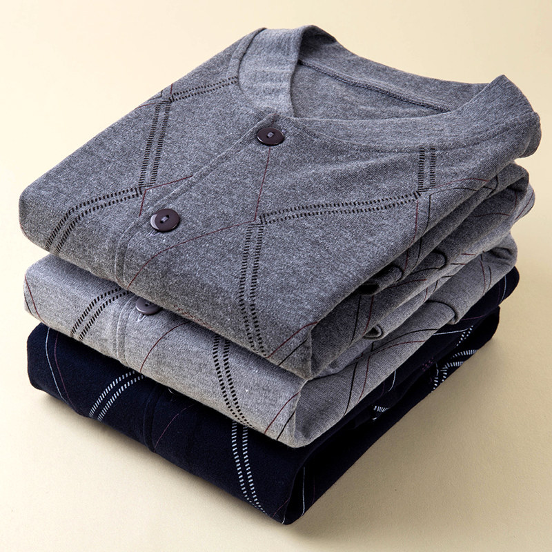 Men's middle aged autumn clothes pure cotton long sleeve cardiovert blouse single layer cotton wool cardiovert cardiovert heating coat