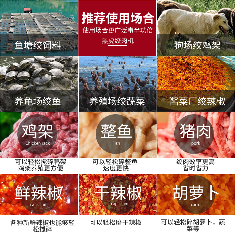 Black Tiger 52 62 large electric meat grinder commercial three-phase 380V high-power fish grinder chicken rack bone crusher