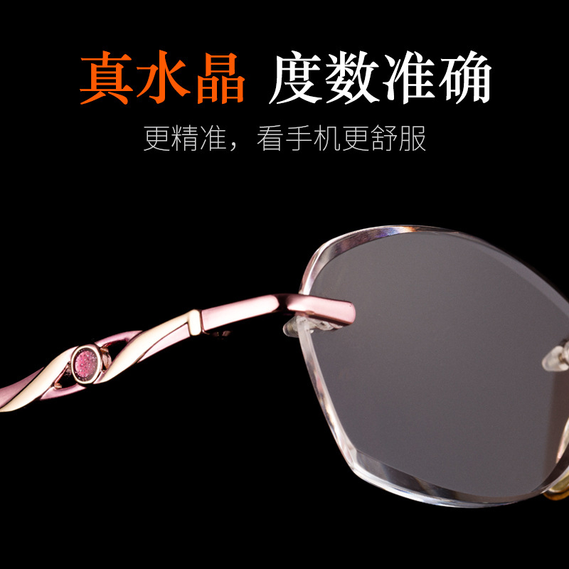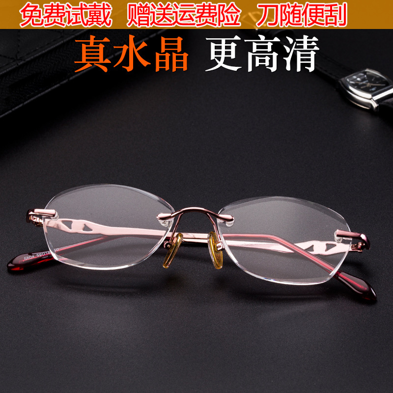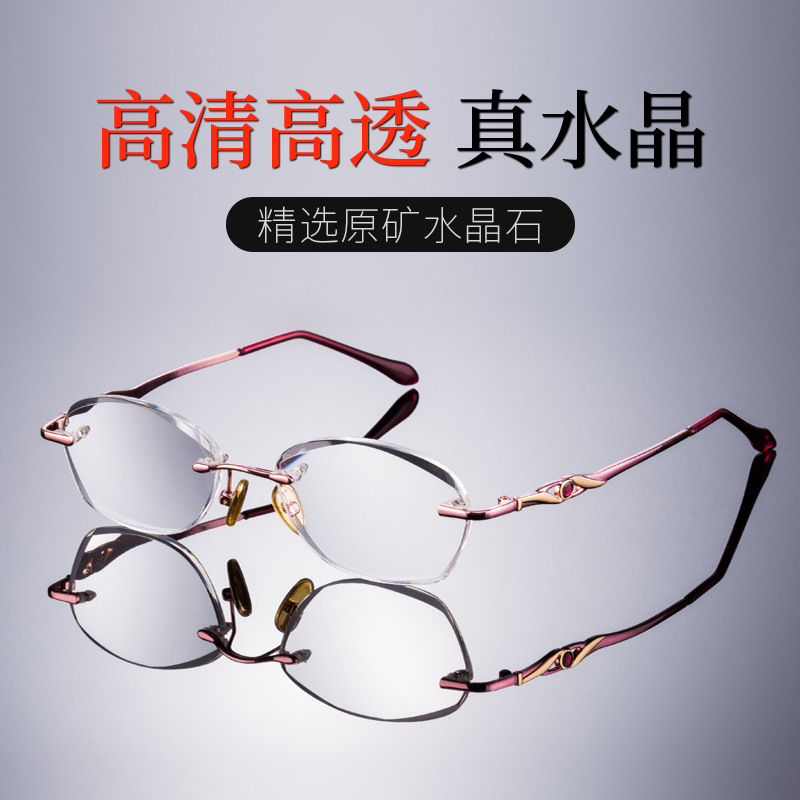 Natural East China Sea crystal presbyopic glasses diamond cut edge frameless stone old light mirror women's eye-catching eye-catching old-sighted mirror