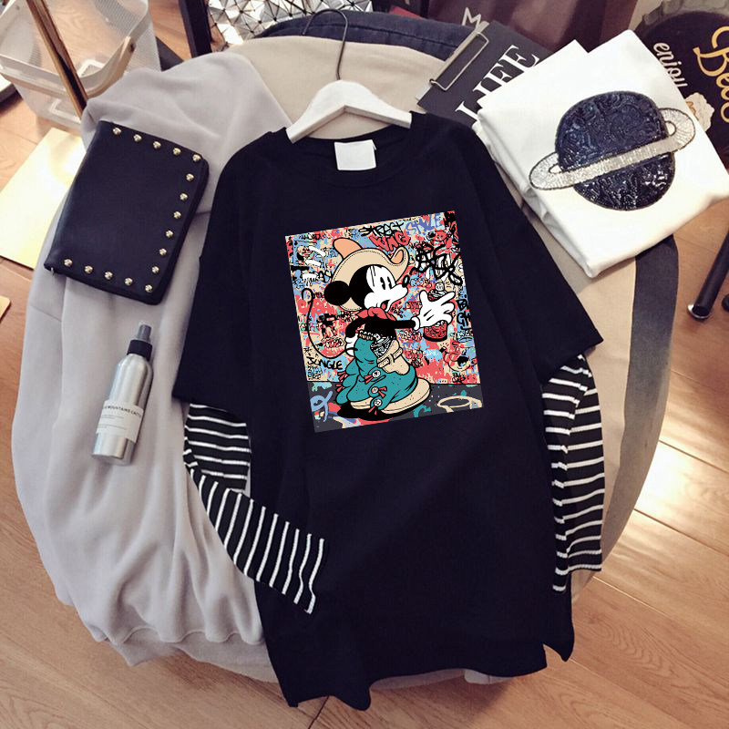 Gray (food girl) splicing black (pure color) splicing white (graffiti mickey) splicing white (pure color) splicing white (pure) splicing clamping ink (WONDER) black