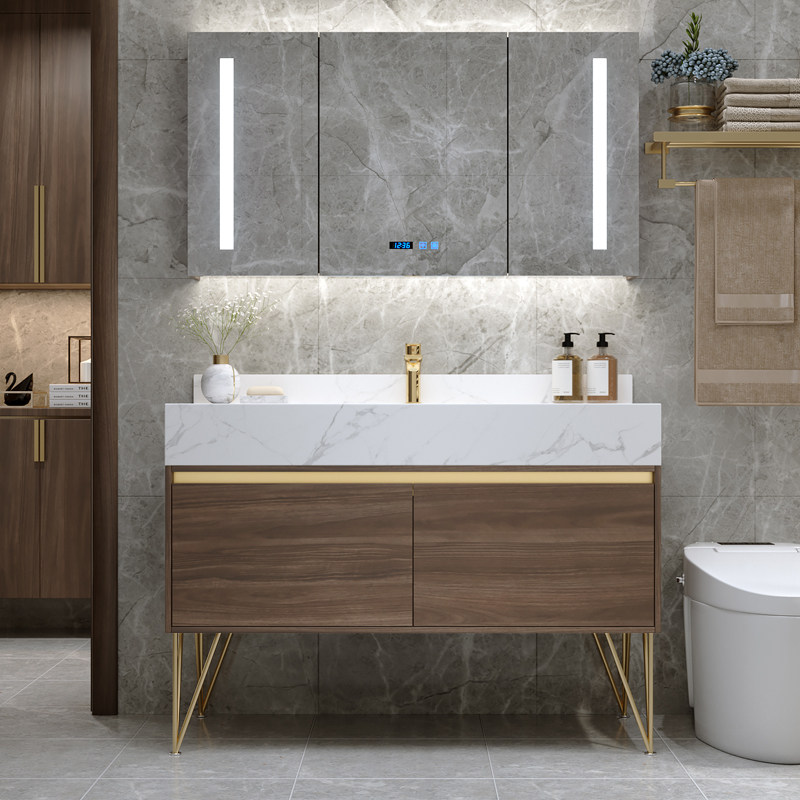 Rock plate integrated modern minimalist light and luxurious bath room cabinet combined floor washout washsink wash basin Wash Table Basin Makeup room
