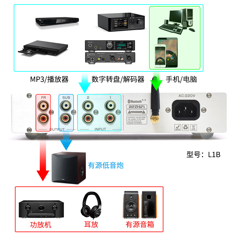 BRZHIFI Pure Class A 2.0 2.1 Channel Tone Pre-Secondary High School Bass Adjustment Bluetooth 5.0 Decoding