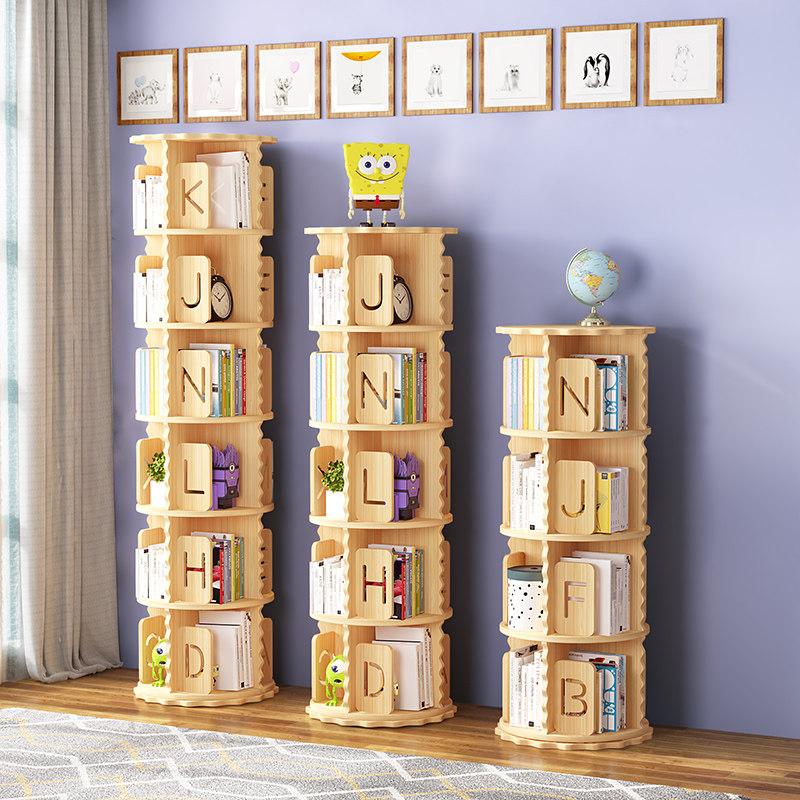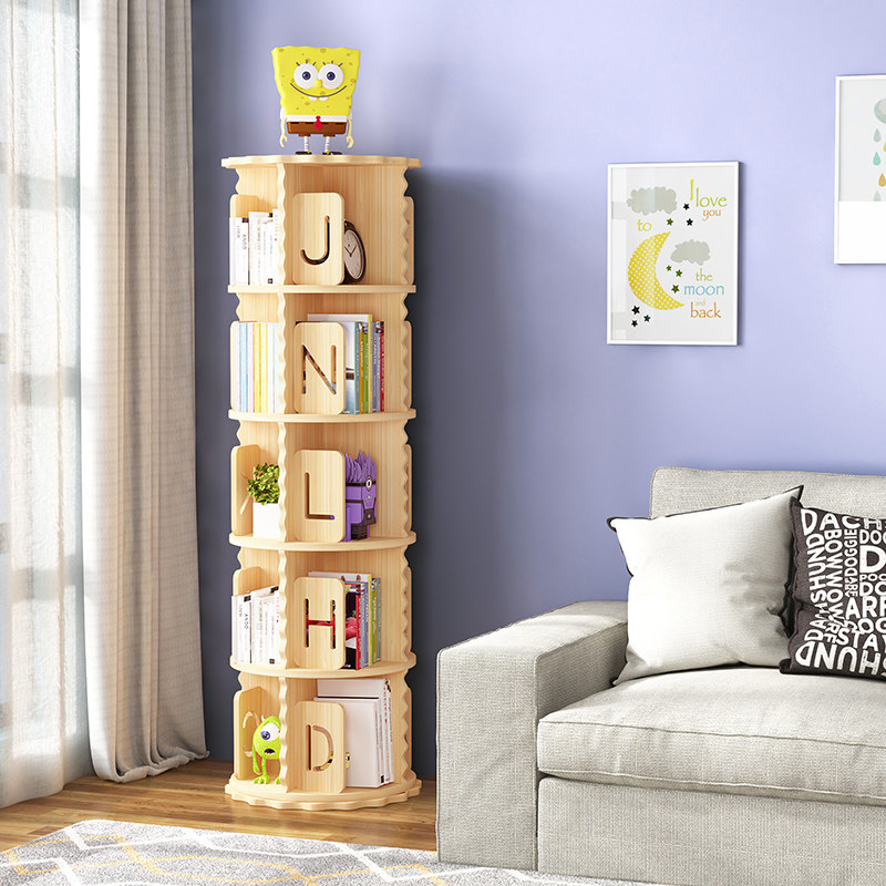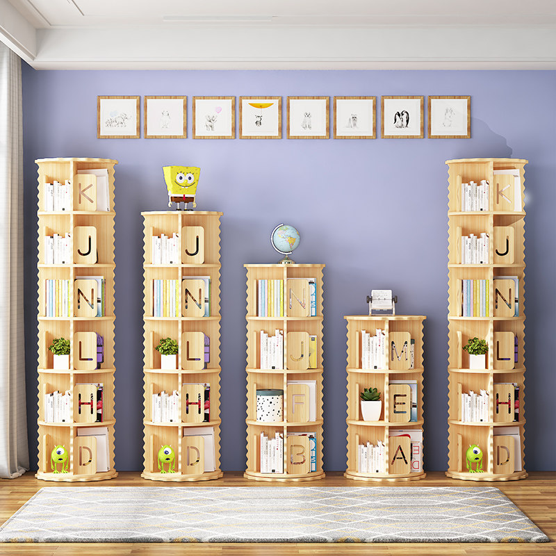 Full solid wood rotating bookshelf 360 degrees bookcase student child plotter shelf floor corner shelve storage
