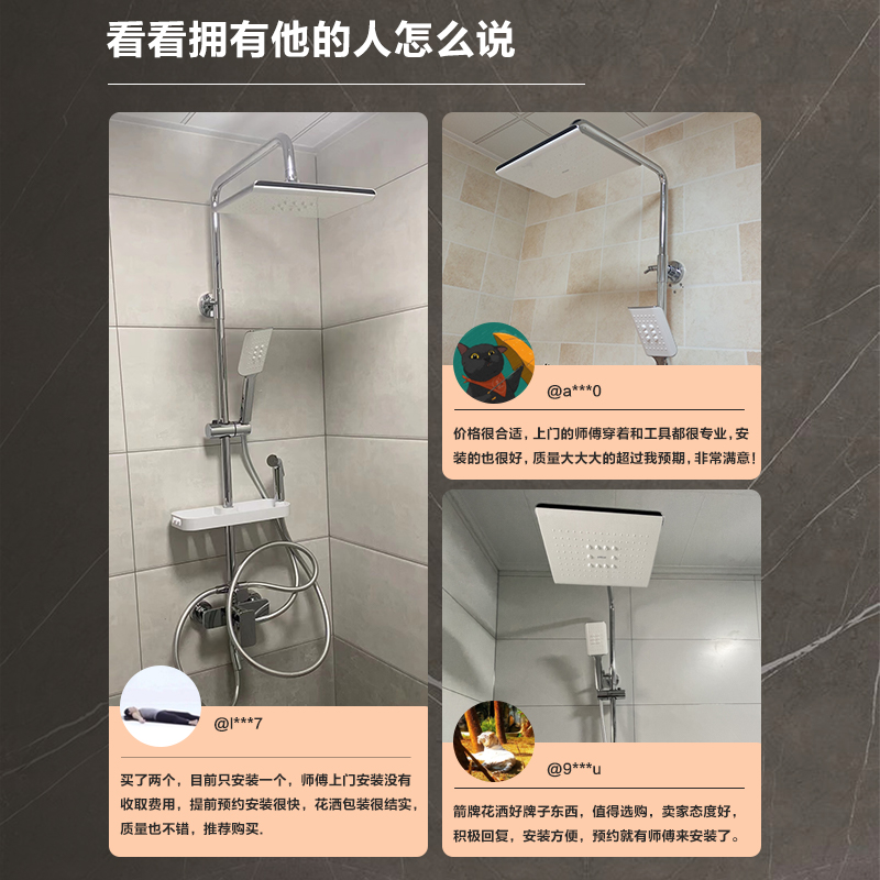(main picture section) J subsection (four-function self-cleaning shower head) handheld shower double self-cleaning A subsection (three-function pressurized shower head) pressurized large water discharge C subsection (three-function pressurized shower head) pressurized large water