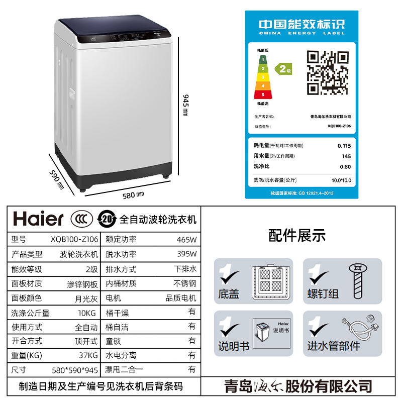 (Lixuan 100)Haier 9 10 kg large capacity wave wheel washing machine automatic household small big child