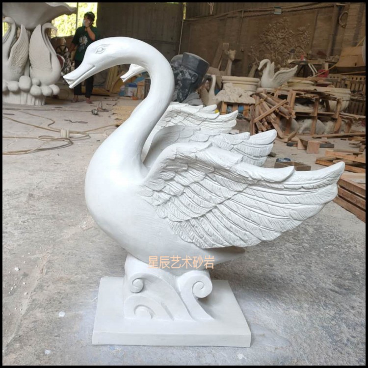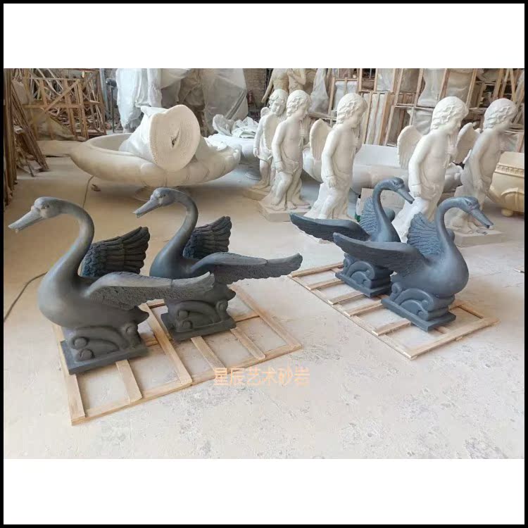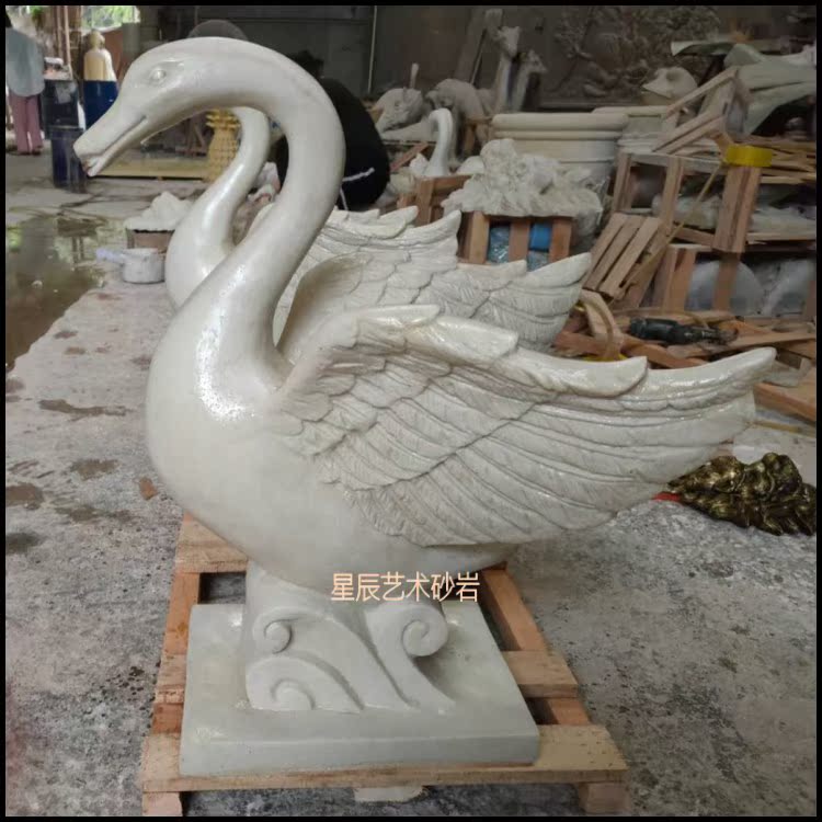 Star Chen Sandstone Swan Spray Pool Sculpture European Style Relief Fresco Fiberglass Round Carved Villa Hotel Landscape Renovation