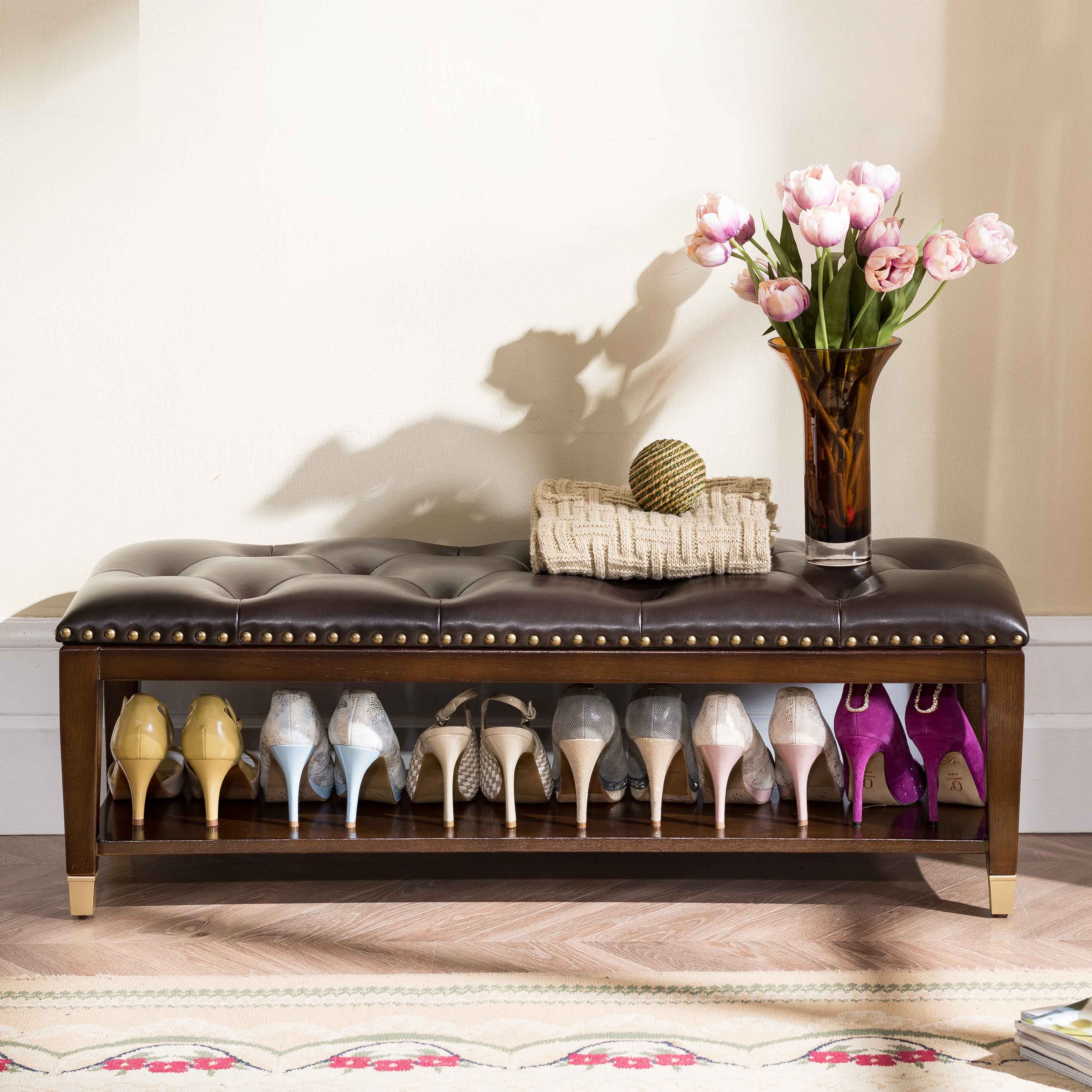 New Chinese-style single-layer shoe-changing stool home entrance door leather can sit-type shoe rack simple modern all solid wood wearing shoe stool