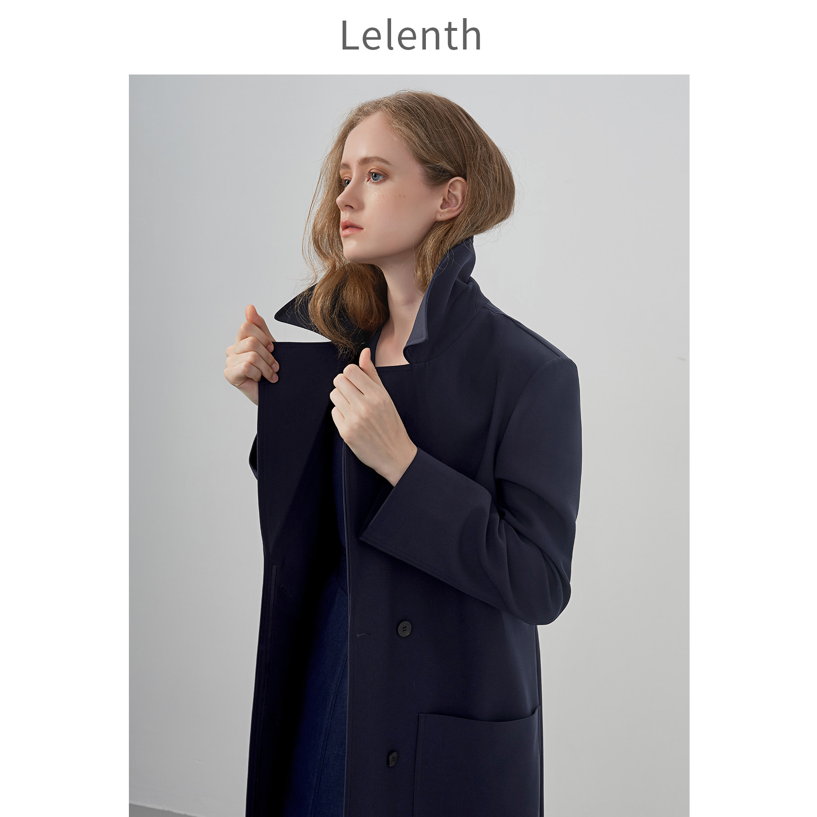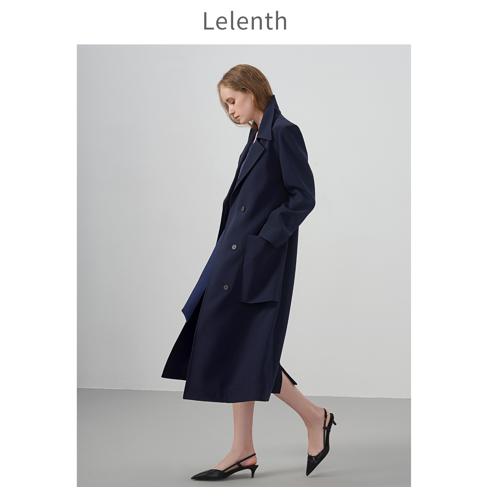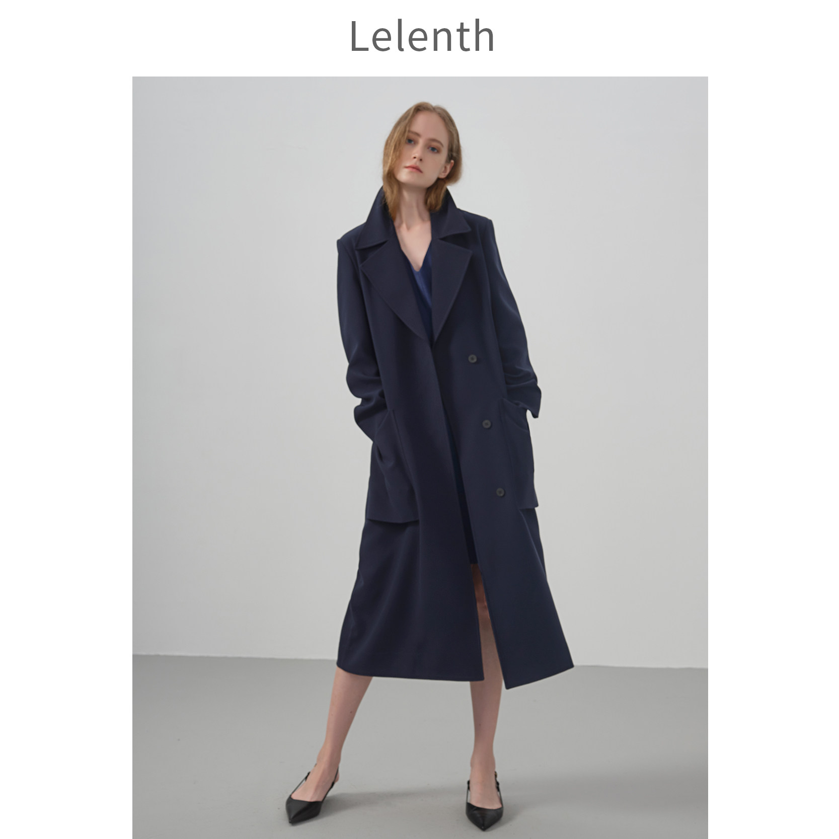 Leren 2021 spring new OL commuter temperament lady Cognitive Ingléo's Deep Blue medium Long version jacket