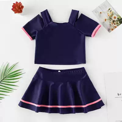 Navy blue Pink navy two-piece set(swimsuit swimming cap) Pink one-piece set(swimsuit swimming cap) Navy two-piece set(swimsuit swimming goggles) Pink two-piece set(swimsuit swimming goggles) Navy