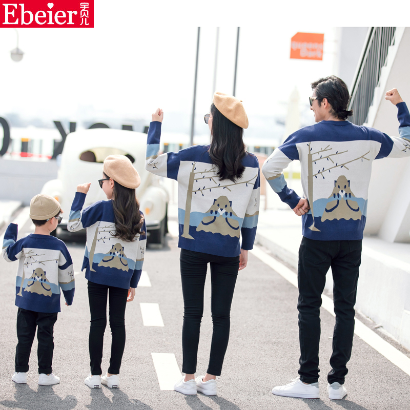 High-end parent-child clothing autumn and winter style 2022 fried street sweater mother and child mother and daughter family of three high-end foreign style jacket