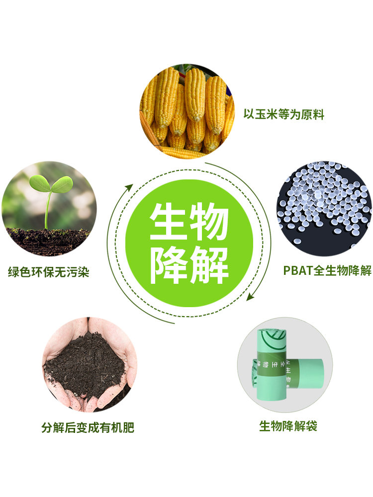 Fully biodegradable garbage bag household thickened medium-sized flat mouth plastic bag green environmental protection kitchen waste garbage bag