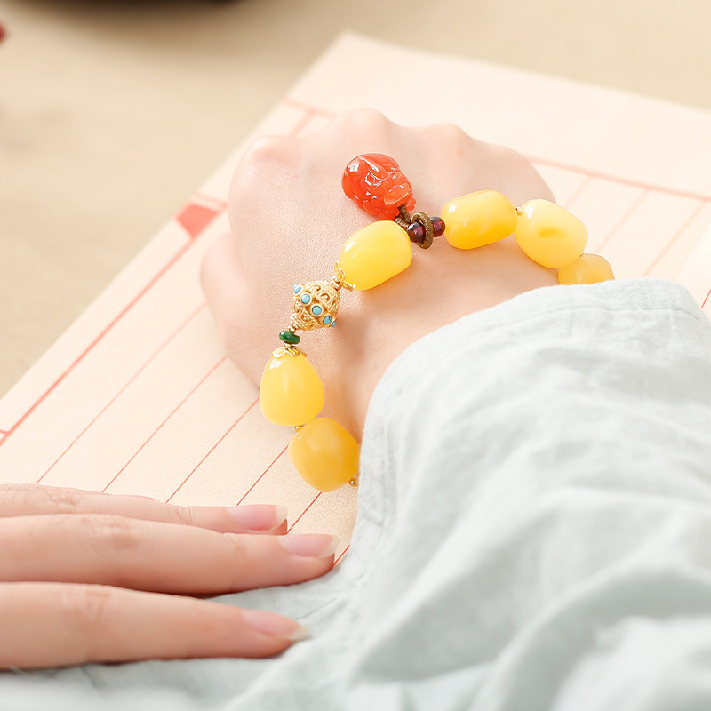 Natural honey wax Raw arm string amber honey wax fashion men and women's handdress south red jacket pendant