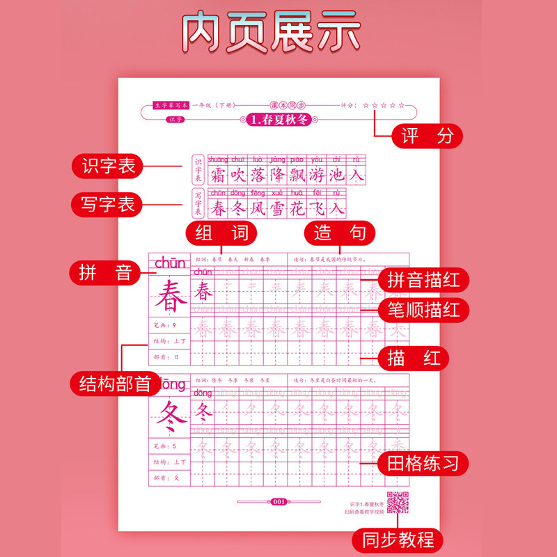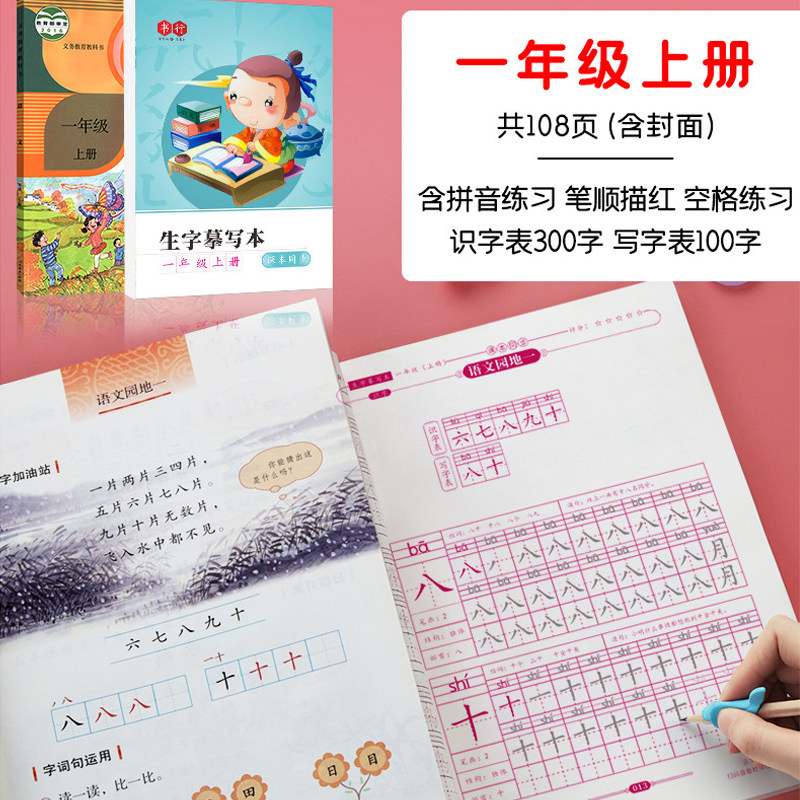 People's Education Edition textbook synchronous new word tracing red book first grade Chinese first volume copy book second, third and fourth grade practice copybook