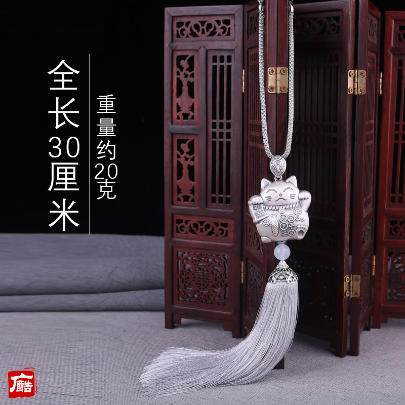 Guangku car pendant high-end men and women personality creative sterling silver lucky cat rearview mirror safety hanging pendant