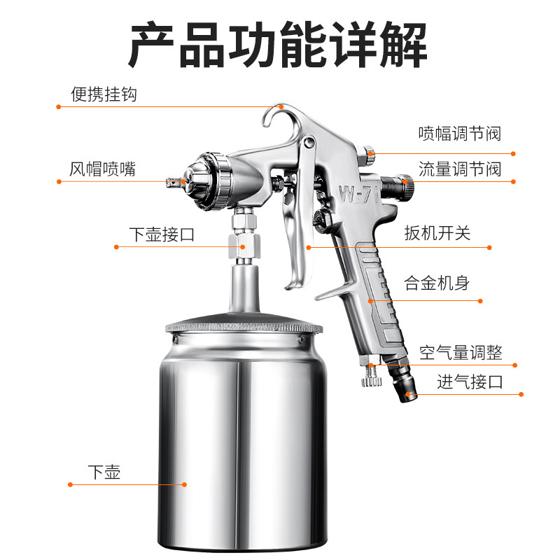 Painting gun pneumatic paint gun spray gun spray gun car paint gun pot paint pot household painting tool