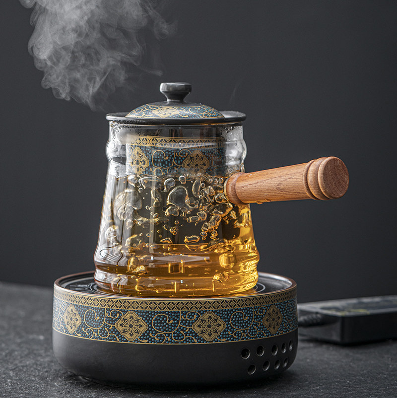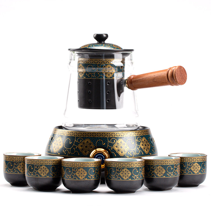 Side to cook teapot boiled teapot of tea-burning teapot black crystal furnace electric heat health preserving household ceramic office heat-resistant glass day style