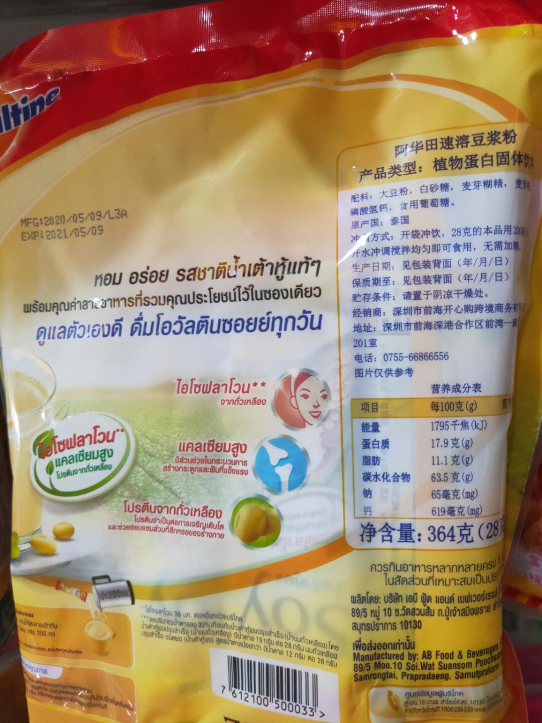 Spot Thailand original Ohuatian instant soy milk powder 364 grams 13 packs into the original breakfast nutrition brewing drink