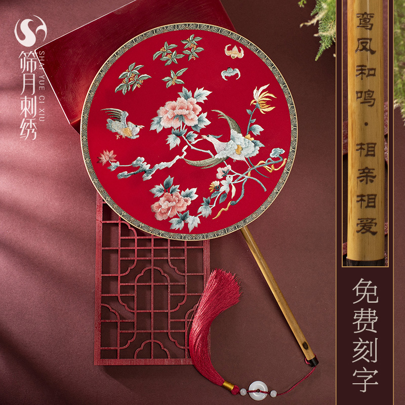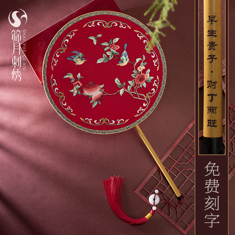 Embroidery Classical fan Su embroidered with ancient round fan hand double embroidered Palace fan China Wind and ancient dress female Han clothes dance fan