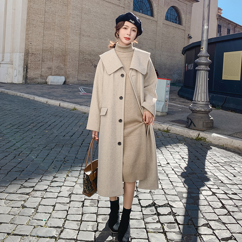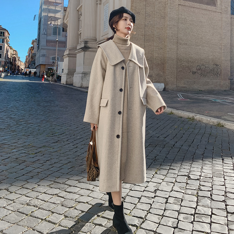 Navy collar woolen coat women's small 2022 new Korean style gentle high-end autumn and winter thickened woolen coat