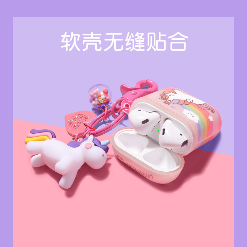 Cute unicorn protective sheath is an upgrade softshell Oh (point I see a detailed introduction) airpods1 2 universal (pink unicorn) Softshell★support for wired wireless charging airpo