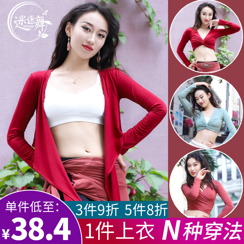 Rosemary dance belly dance top new spring and summer long-sleeved cardigan practice clothes outside dance hip towel dual-use beginners