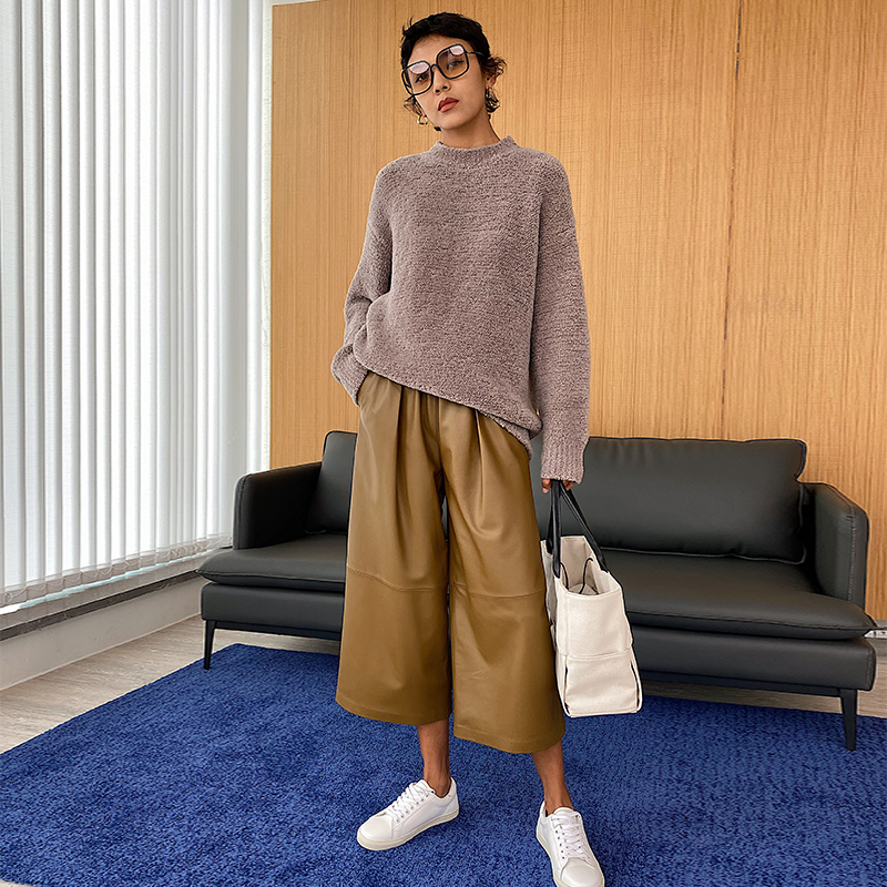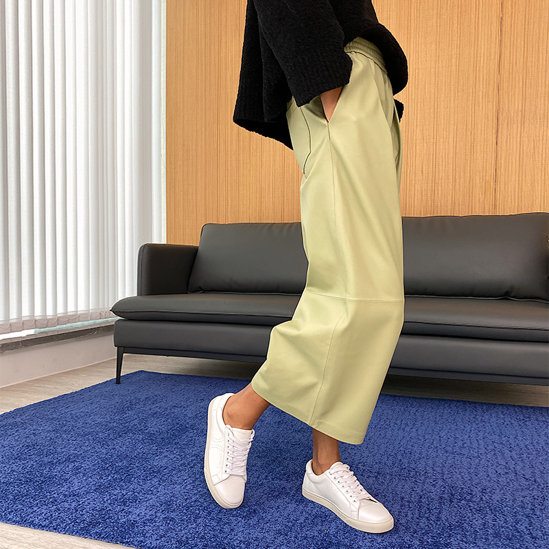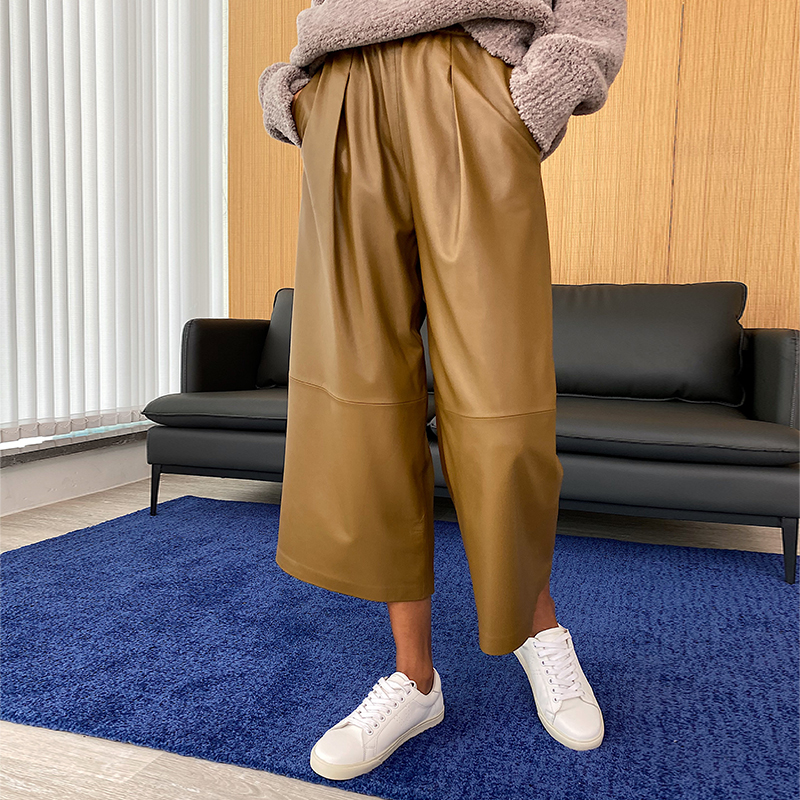 Interlocking Imported Series Italian Light Coated Sheep Leather H - shaped 8 - leg straight - legged straight - legged pants for spring