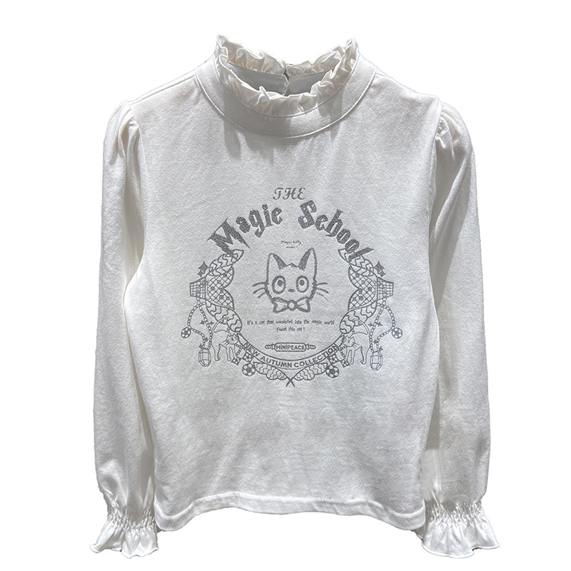 Korean children's clothing spring and autumn new children's women's pure cotton white foreign style bottoming shirt round neck embroidery bubble long-sleeved top