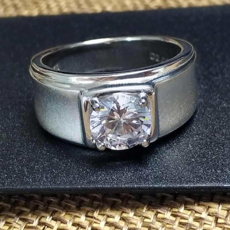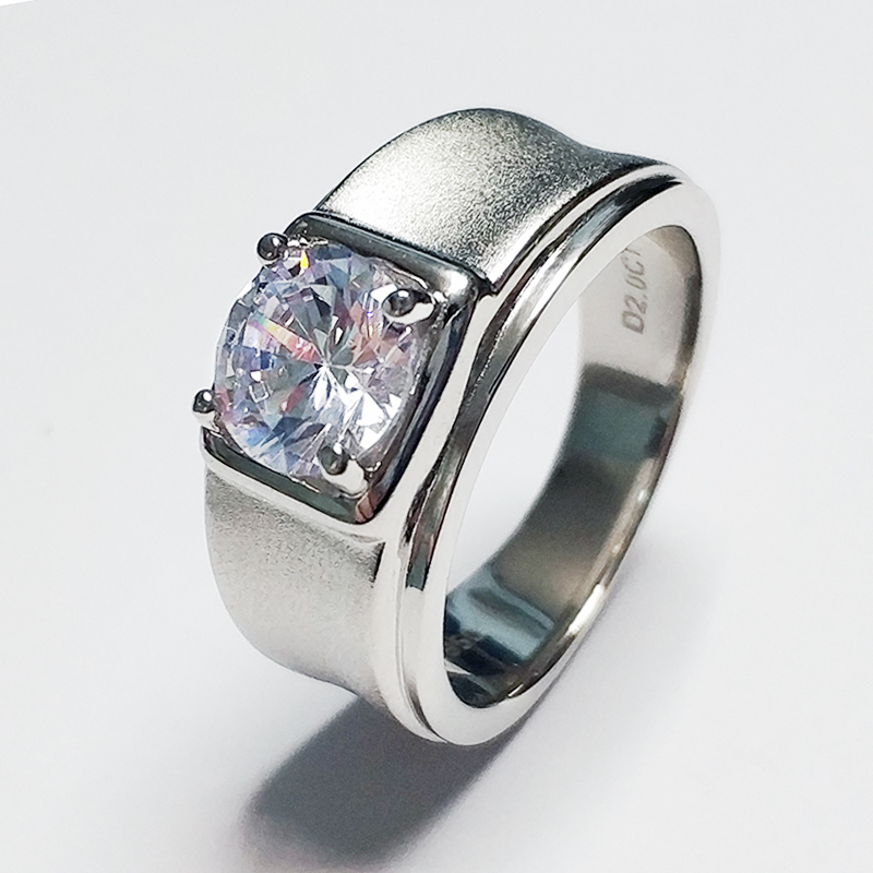 Men's S925 pure silver overbearing large ring frosted surface transport platinum mosanstone 1 2 carplated 18K white gold