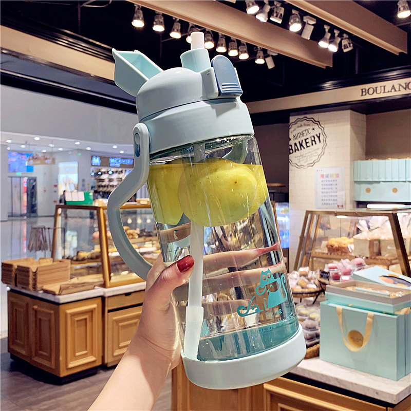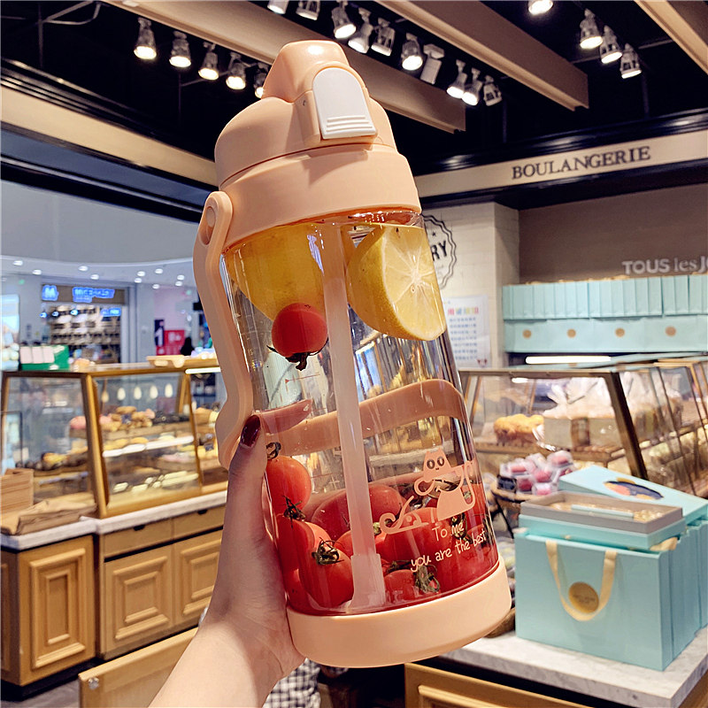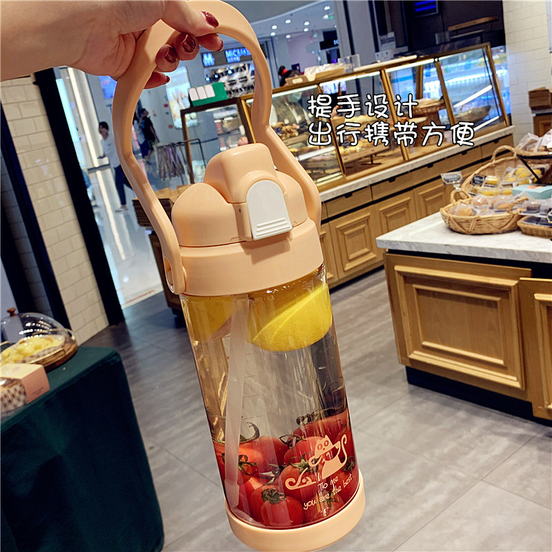 Simple trend adult straw plastic cup Large kettle handy cup Men's and women's fitness sports large capacity water cup