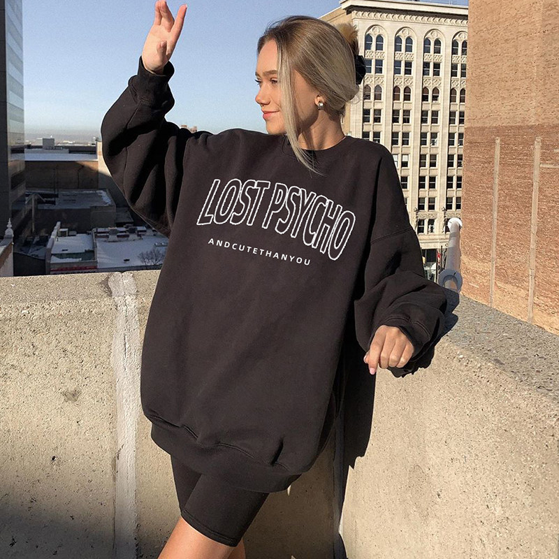 H-style European and American style BF monogram embroidery solid color loose round neck hoodie pullover oversize medium length coat