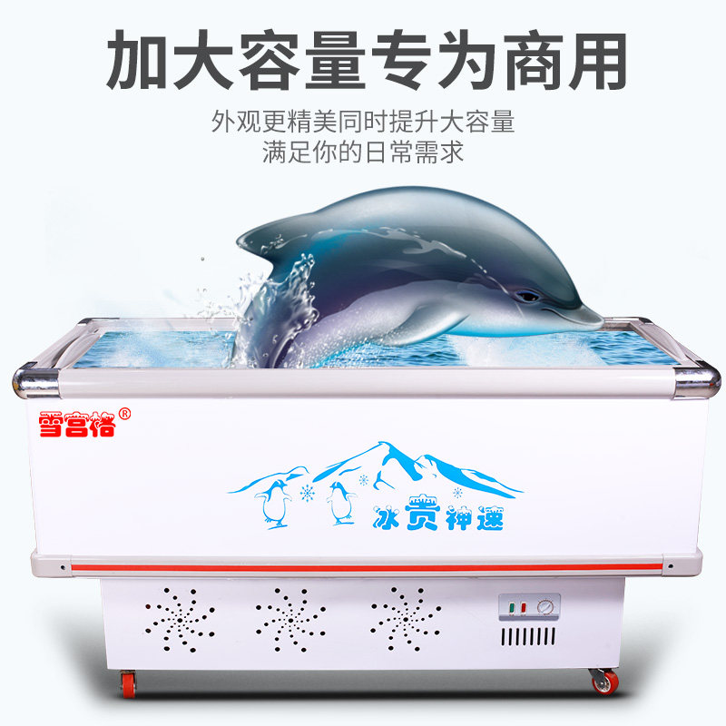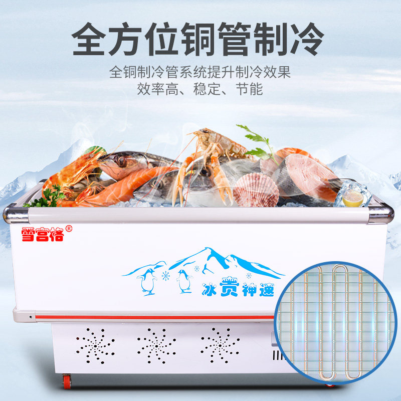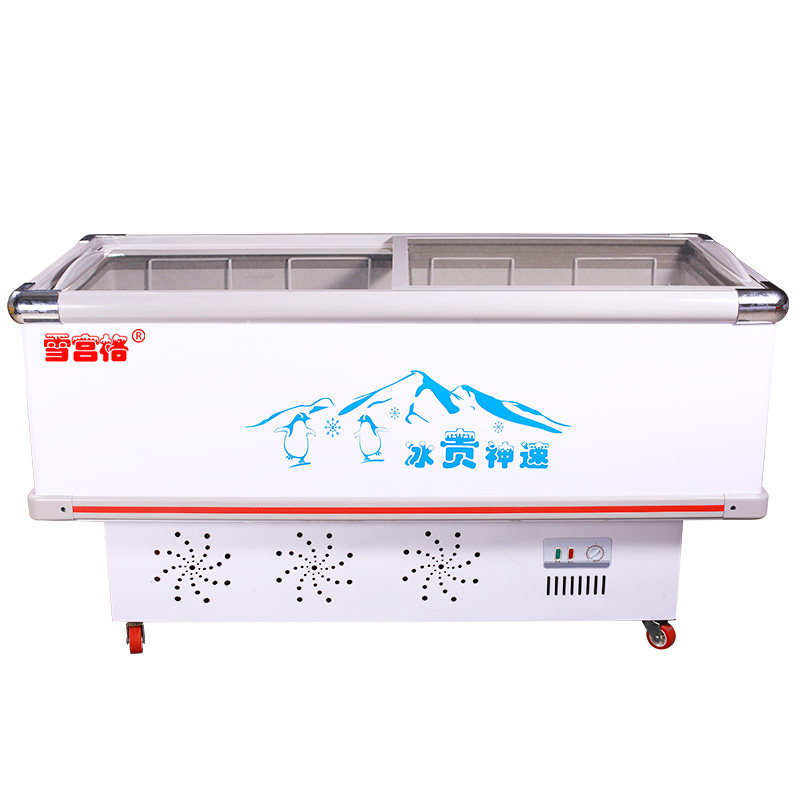 Freezer commercial large-capacity horizontal island cabinet glass door refrigerated freezer display ice cream cabinet freezer barbecue seafood cabinet