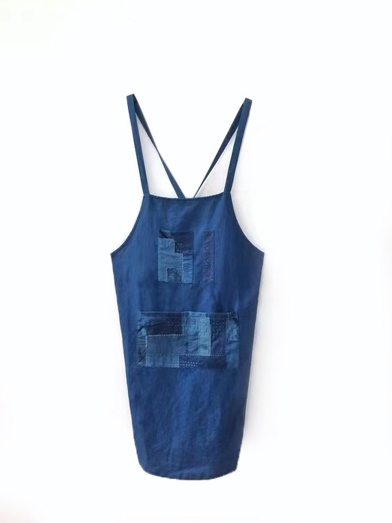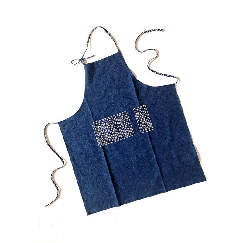 Unfinished persimmon dyed blue dyed ancient French blue printing men's and women's blue-dyed cotton multi-functional apron indigo plant dyeing