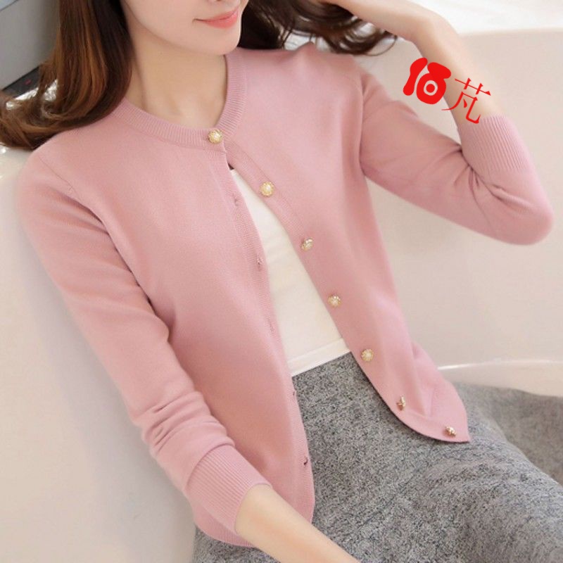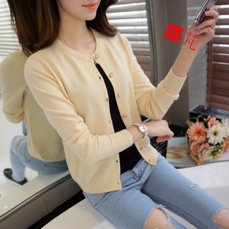 Autumn Winter New Knit Cardiovert Woman Han Version Long Sleeve Round Neckline External Hitch Short Fur Coat Small Shawl Jacket Air Conditioning Shirt