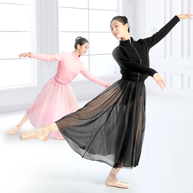 Adult stand-up collar ballet warm-up jacket + adult wide-brimmed elasticated double-layer soft mesh long skirt