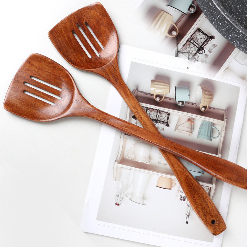 Wood leaky shovel wooden shovel does not stick to the pot special wooden spatula stir-fry spatula does not hurt the pot wood shovel resistant to high temperature wood shovel household