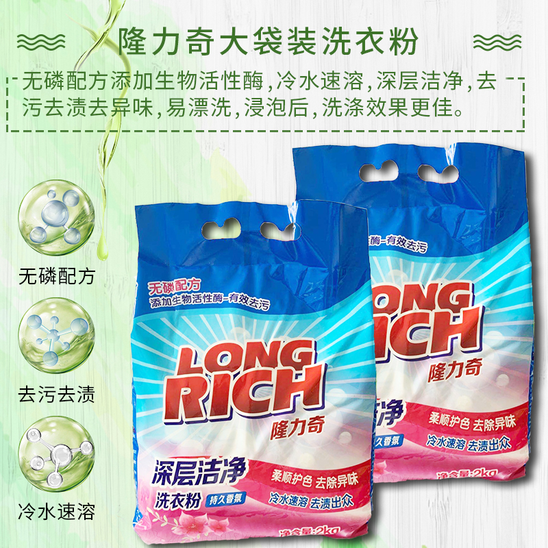 Longlich Laundry Powder 2kg Cleaning Household Hostel 4 kg Solid Phosphoryloid-free Pollen dirt stains
