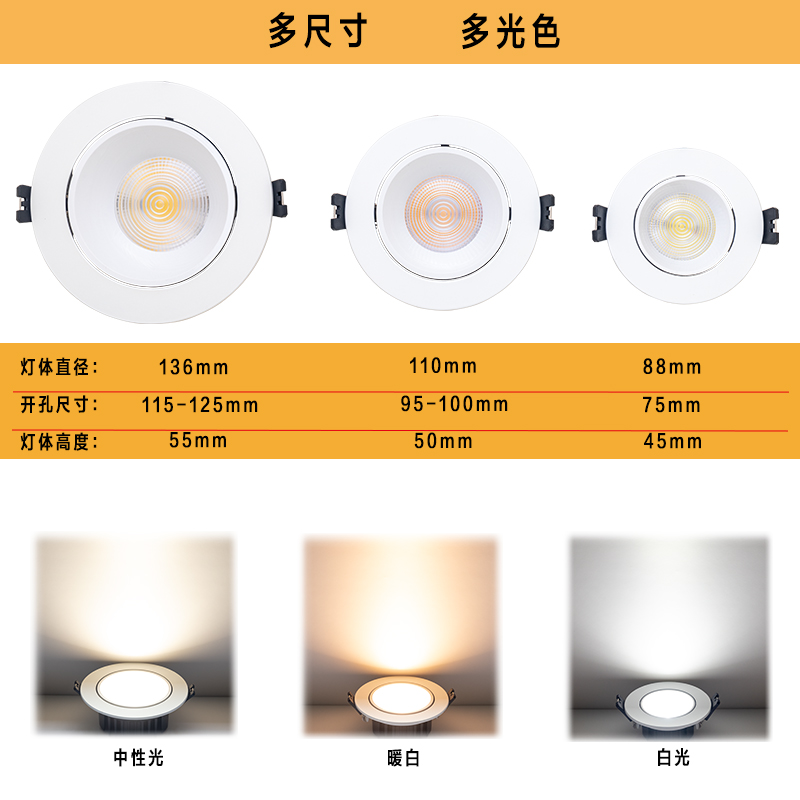 Anti-glare 7W White light-Drilling 7 5cm] - 5pcs Anti-glare 7W Warm light-Drilling 7 5cm] - 5pcs Anti-glare 7W Neutral light-Drilling 7 5cm] - 5pcs