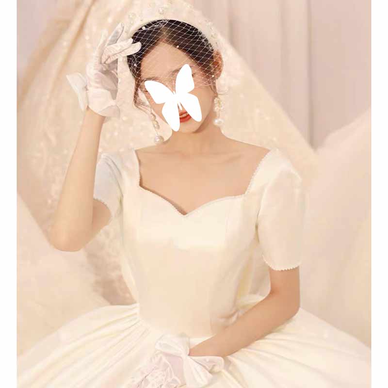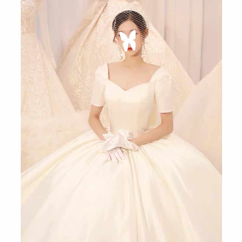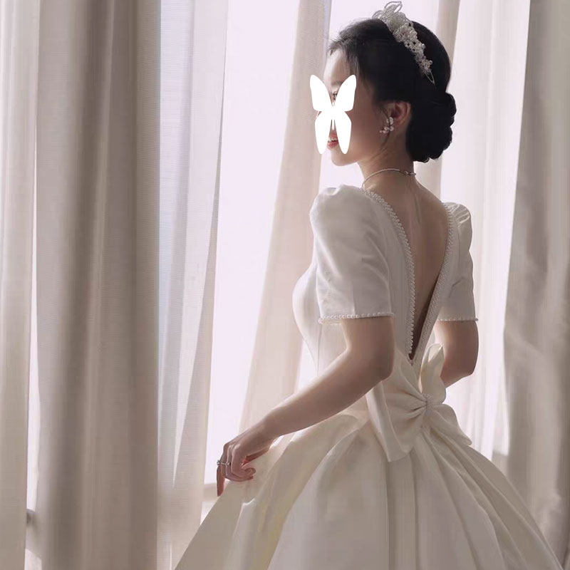 Satin wedding dress 2023 new trailing dress temperament bride small Sen Department main wedding dress super fairy retro 2022