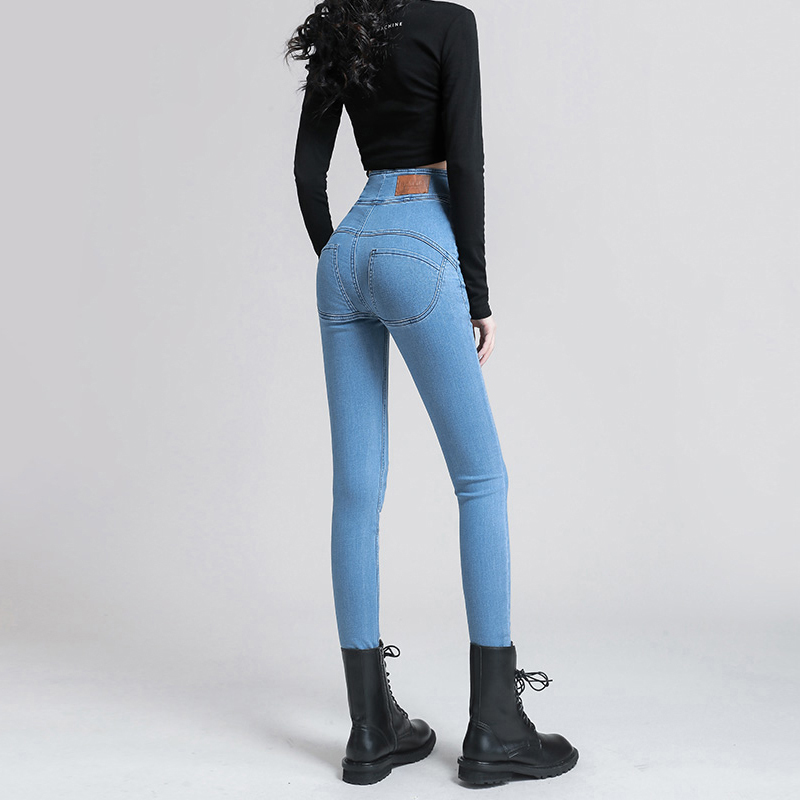 Summer thin honey peach hip jeans female high waist display slim 2022 new lifting hip sexy tight fit elastic narrow footed pants