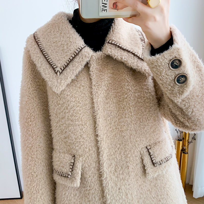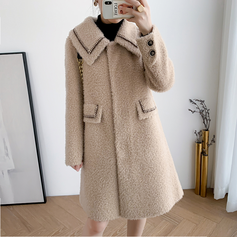 Lamb wool coat women's 2022 winter new sheep shearing coat with fur integrated mid-length Haining fur slim