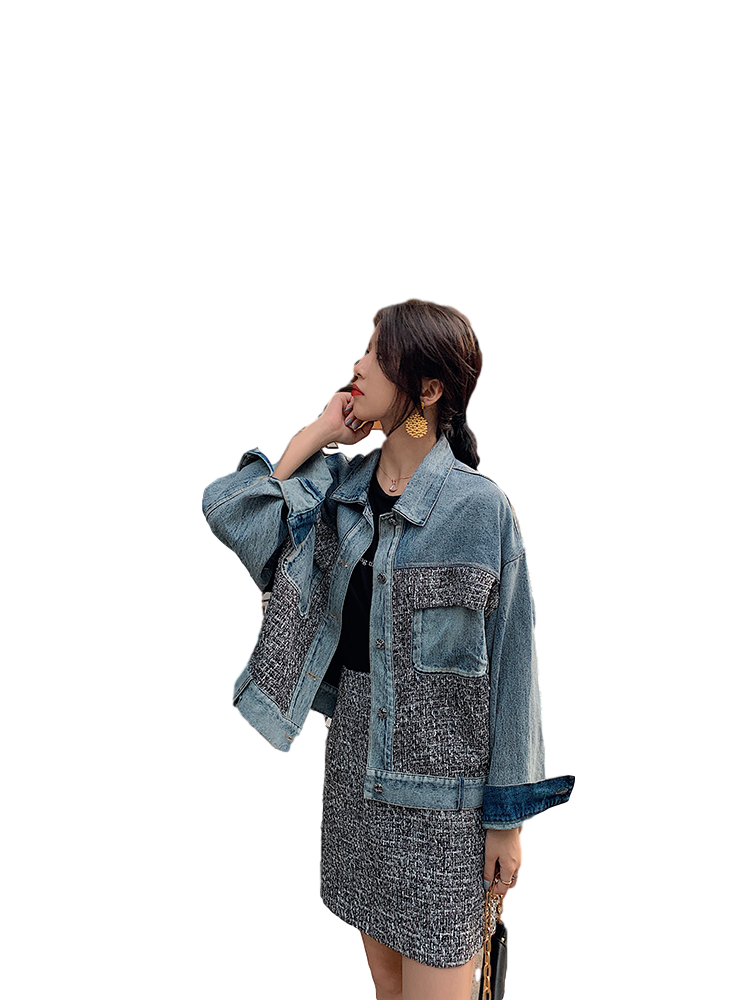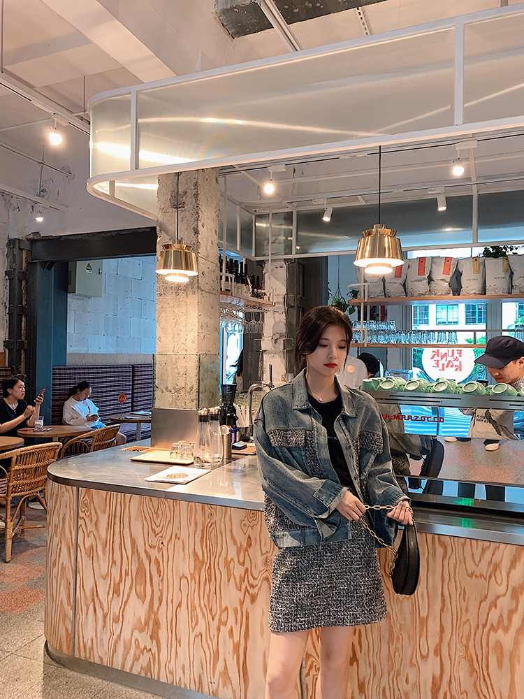 Lecea Alice denim suit women's 2022 autumn new Korean version of the Western style fashion temperament two-piece skirt