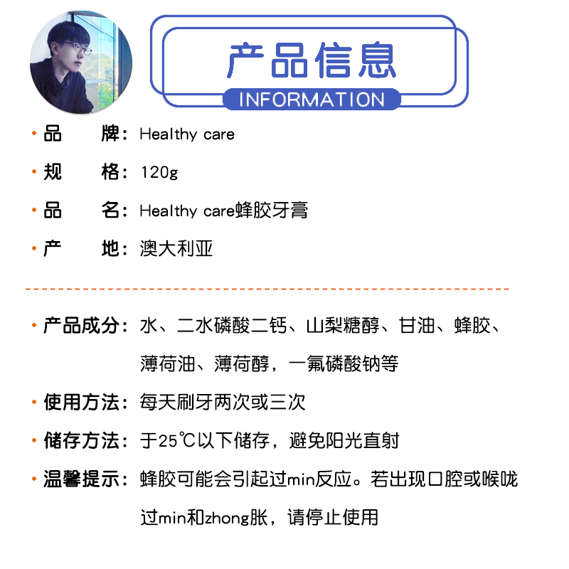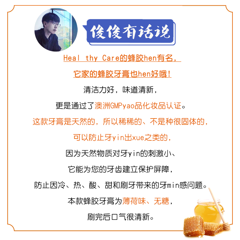 Australian Healthycare Propolis Toothpaste HC Toothpaste Gum swelling and pain Decontamination Mint flavor 120g